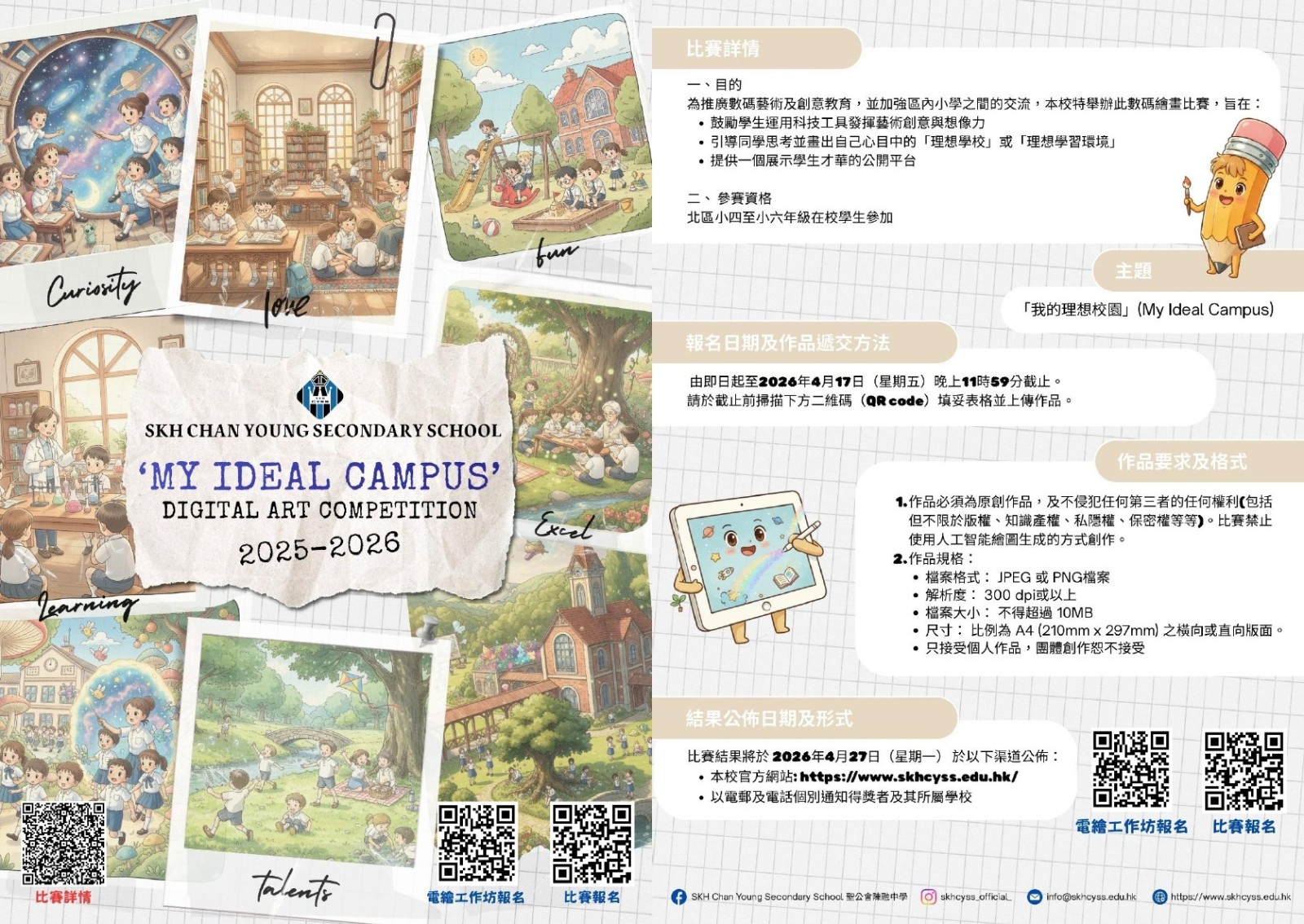2025-11-15本校2025年度畢業生潘浩仁同學及張天樂同學,憑藉其在香港中學文憑試的卓越表現,榮獲蓬瀛仙館「第三十四屆 (2025年) 香港公開考試成績優良獎」。頒獎典禮已於2025年11月9日假座蓬瀛仙館圓滿舉行,兩位校友均獲頒獎學金及獎狀,以茲表彰。蓬瀛仙館自1992年起設立此獎項,旨在鼓勵學生努力求學,樹立優良榜樣。