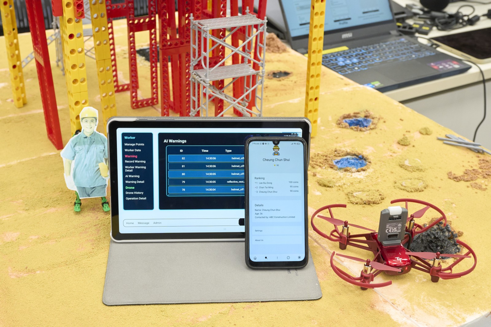 Starting from May 2025, the team engaged in intensive brainstorming, participated in multiple inspiration workshops, and attended numerous meetings and interviews to refine their project concept, identifying construction site worker safety as a pressing social issue. They then applied the full design thinking cycle: empathizing through in-depth research, defining concrete safety problems, ideating feasible 5G-enabled solutions, and prototyping with AI tools, drone programming and custom-built mobile applications, followed by rounds of testing and improvement.