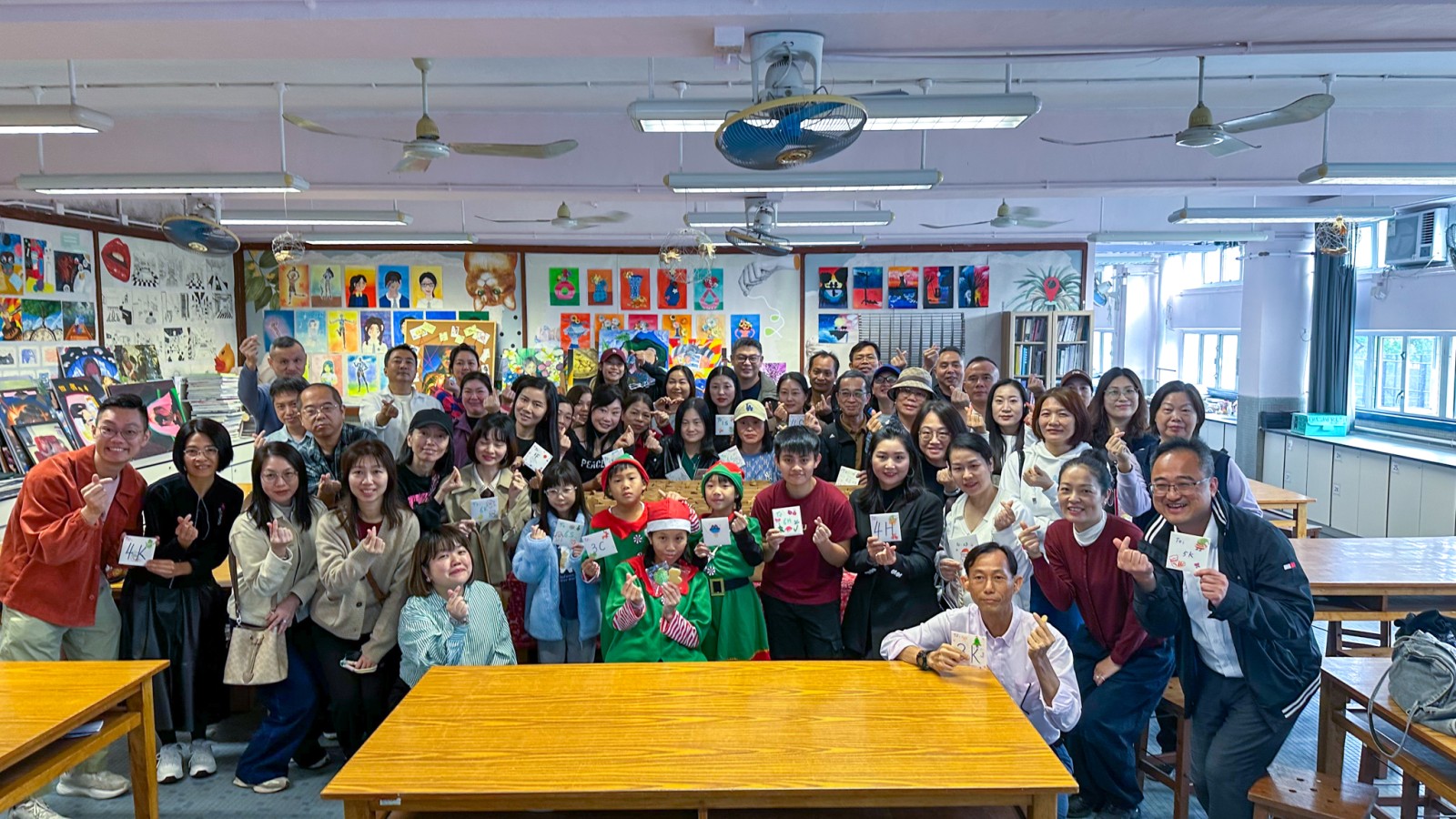 另外,為配合本校的聖誕感恩活動,近六十名家長義工身體力行,於視藝室為各班同學製作聖誕卡,創意洋溢,一字一句盡顯關懷之情。此外,義工們亦親手包裝及到課室派發聖誕曲奇,為子女送上節日祝福,整個活動過程簡單而溫馨。