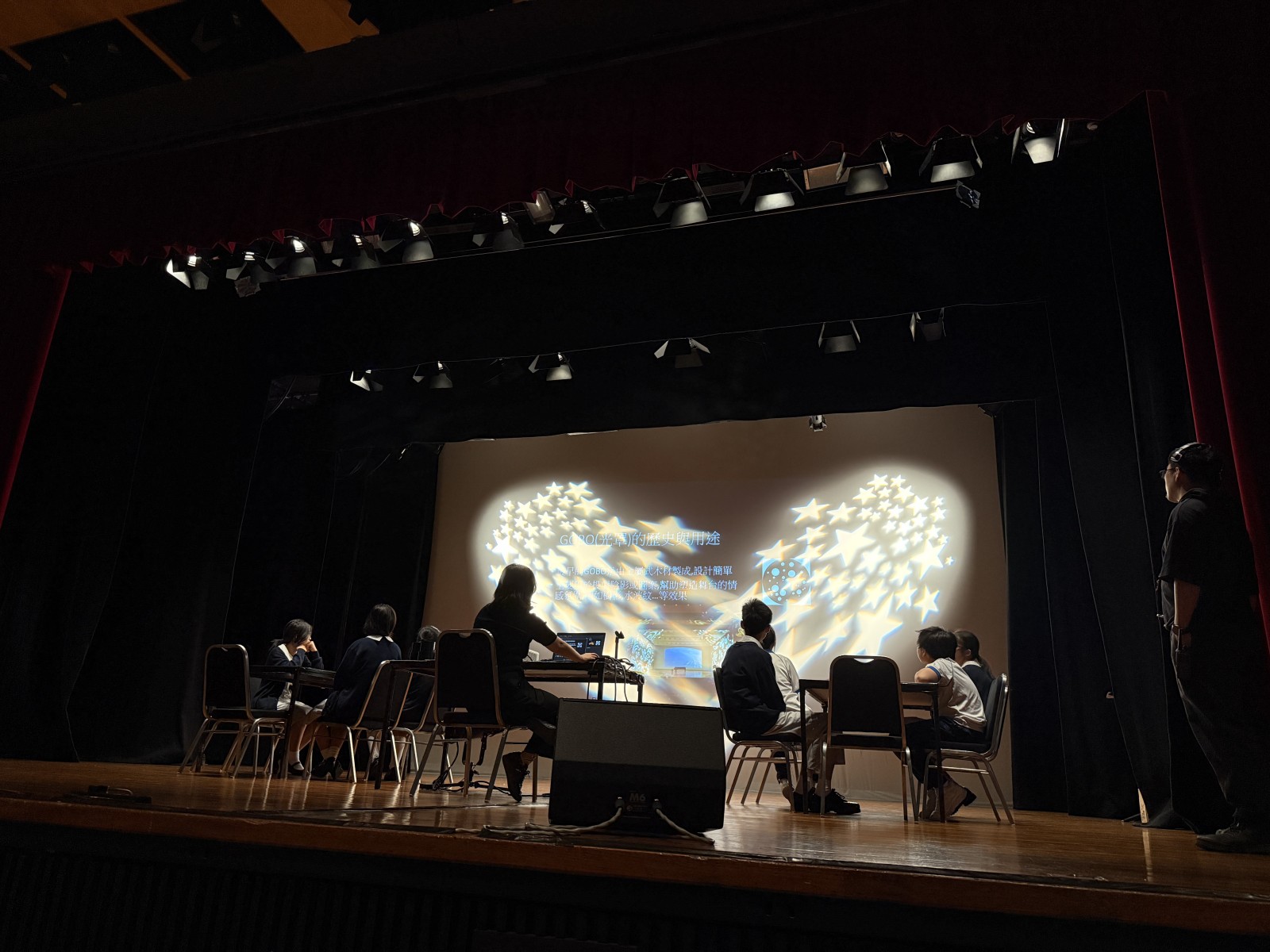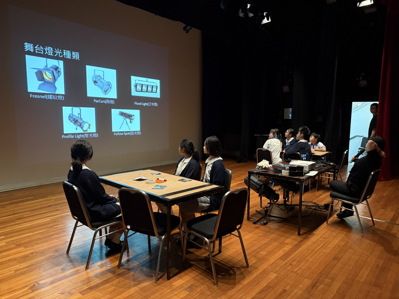 The workshop provided a comprehensive introduction to basic stage setting and operation, led by an experienced stage management team. Students observed demonstrations of various lighting effects and were invited to take part in an interactive session, where they experimented with creative ideas to produce special stage effects.
