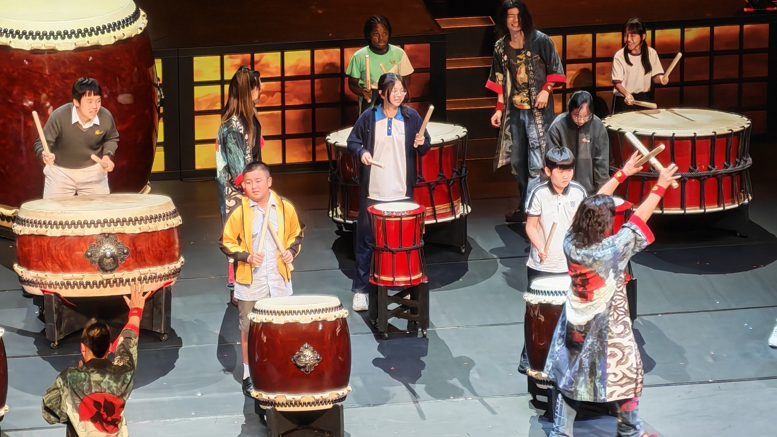 Adding to the excitement, one of our students—alongside peers from other schools—was even invited on stage to try playing the taiko drums themselves. This hands-on moment gave them a taste of the power and discipline behind the art form, making the experience even more unforgettable.
