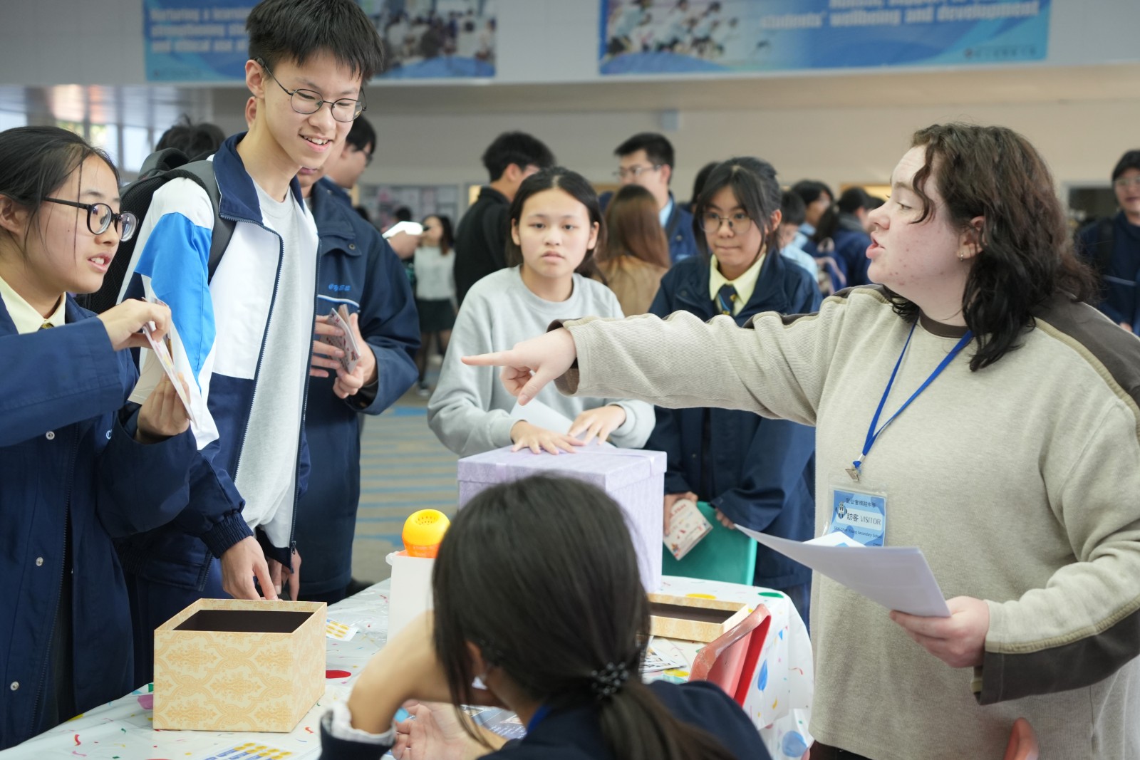 The festivities began by transforming the Covered Playground into a bustling music carnival. S.2–S.4 students explored eight themed booths designed to build confidence and spark conversation.